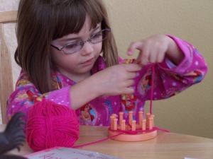 So somehow our darling Kata managed to twist her ankle…and good…she managed to actually cause it to swell…we’ve been icing it and letting her “rest”…she’s enjoyed the pampering and being waited upon…like we didn’t know we’re raising a little princess…she even went to ballet class and received lots of praise for showing up and watching from the sidelines because they are in rehearsals for their big recital in June…it’s hard being sidelined…And Baka, right before she left for home, taught Kata how to use a loom…she’s been dying to knit and crochet like her grandmother…note the patience when you’re a grandparent…something I can hardly wait to experience…patience…as opposed to parental frustration of having just one more thing to do…::sigh::…I know my time will come.