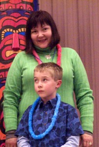 Before we knew it, it was our cake’s turn…and wouldn’t you know it, we had the second highest bid…$35, baby…beat out by the $40 Spongebob cake!!!! Woo-hoo!!!! And hey, get a load of our huge, superfantastic table decoration…courtesy of our friends…we had a giant inflatable palm tree…while everyone else had little paper creations or painted pineapples…that’s Den 6 in a nutshell…a little kooky but fun.