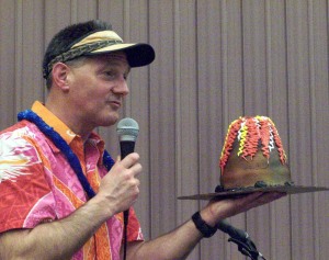 Before we knew it, it was annual cake raffle time…well, this year…we decided to participate individually (last year the Den chipped in for one cake)…our entry was the volcano cake…you can see it in all its splendor below…