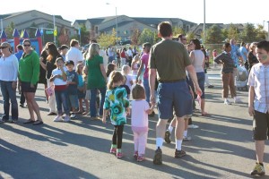 Although there were at least twenty such game booths and a bounce house, the most popular attraction by far was the Dunk Tank. We got there in time for one of the sixth grade teachers to go in the tank. She’s an Olympic silver medalist in rowing (Sydney Olympics). Wow, we still can’t quite process that?? Incredible. So they waited in line, patiently.