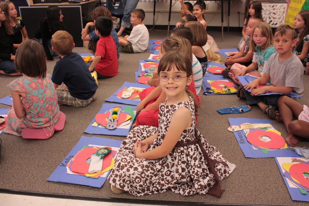 Everyone was well rehearsed and the audience was hushed waiting for the show to start. Most of you know the story of The Very Hungry Caterpillar by Eric Carle. Well, the Kindergartners presented a puppet show based on that story.