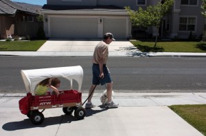 And we’ve rediscovered it this summer. The girls love the adventurous feel of it all. Kata thinks it feels like she’s in an American Girl story. The dog loves the fact he can pace it. And Alex misses its somewhat bumpy ride. But, he gets to use his scooter now.